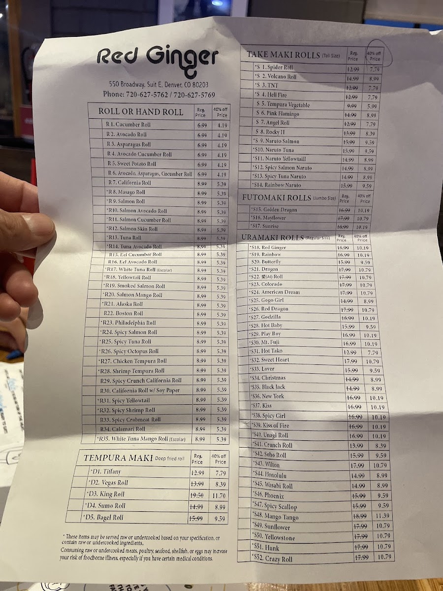 Nestled in the heart of Denver at 550 Broadway, Red Ginger is a sushi haven adored by locals. With an impressive array of sushi rolls and other dishes, it's no surprise that this spot has become a go-to for many, including those who enjoy vegan options. The menu offers everything from classic favorites to innovative creations, like the highly praised Volcano Roll.